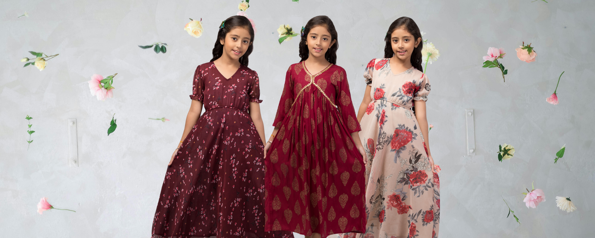Exquisite dresses, ethnic suits and gowns for girls aged 0–14 years. Crafted...