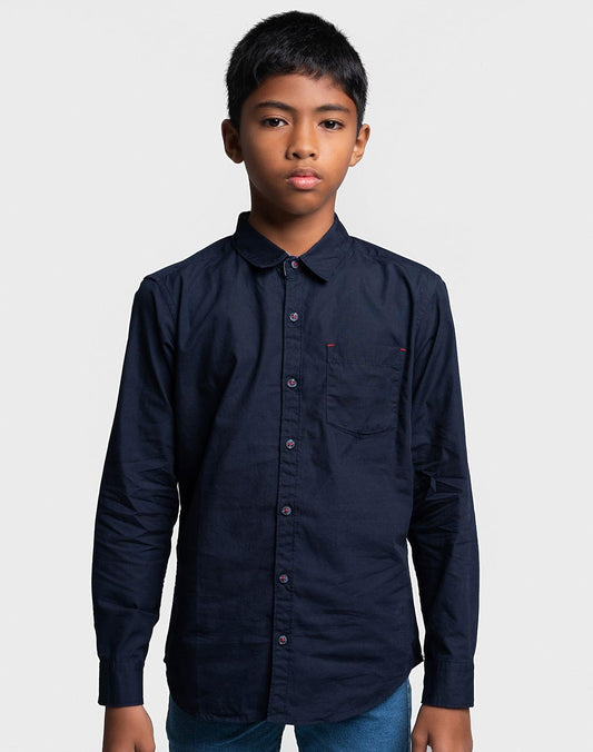 Boys Navy Blue Cotton Shirt For Boys – Classic Full Sleeves